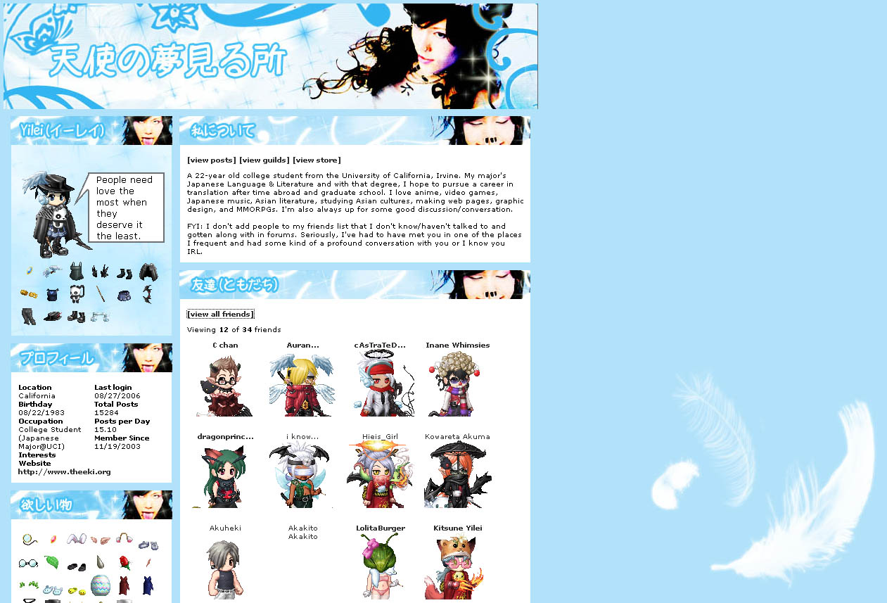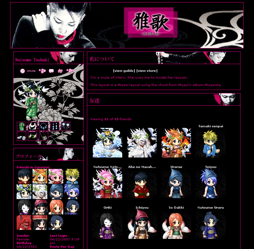 These layouts are more custom interfaces for a "profile" page provided by the website Gaia Onlilne. Designs for this mainly involve image and CSS manipulation.